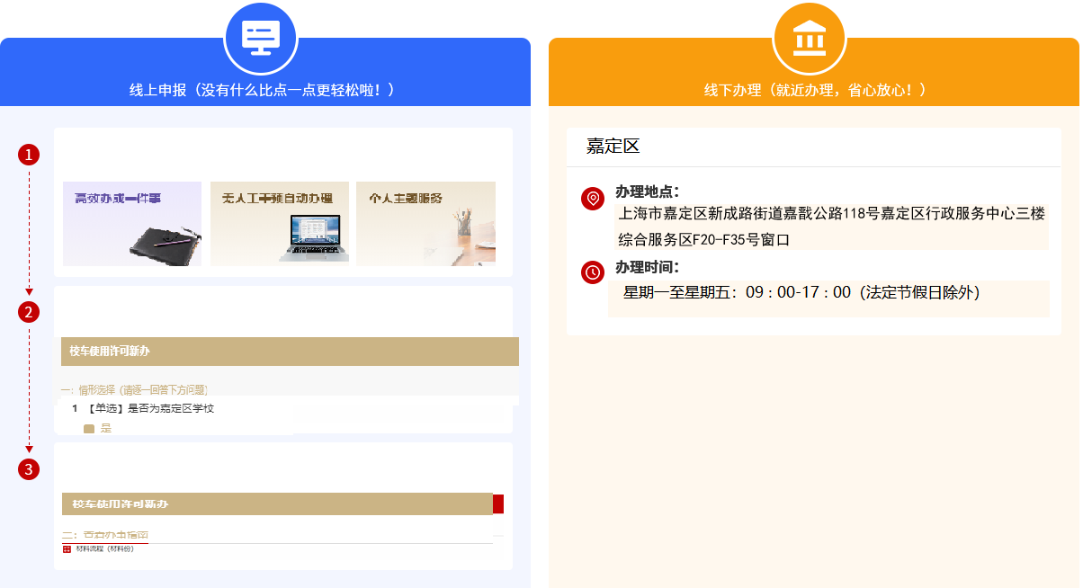 线上线下同步运行,我们也期待您体验线下服务的便利,目前已在嘉定区推出线下体验服务。